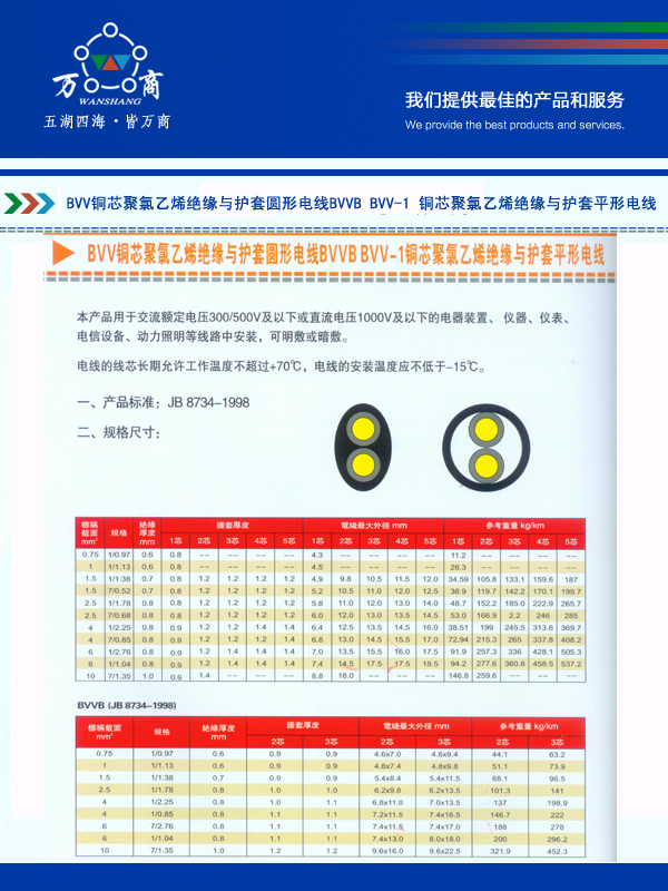 BVV铜芯聚氯乙烯绝缘与护套圆形电线BVVB BVV-1 铜芯聚氯乙烯绝缘与护套平形电线