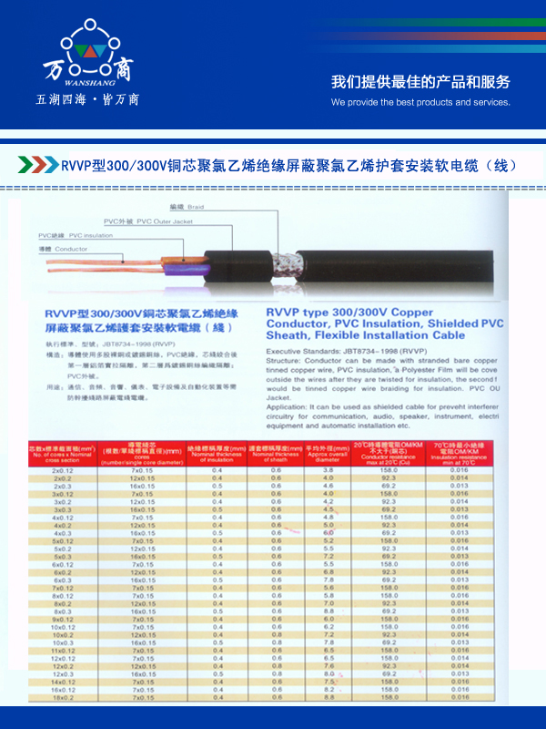 RVVP型300,300V铜芯聚氯乙烯绝缘屏蔽聚氯乙烯护套安装软电缆(线)